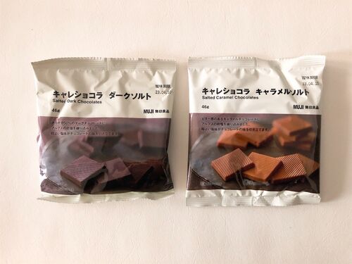 いただきます〜 Follow @chiechocopan 今回は、MUJI(無印良品)の個包装タイプ。 6364)キャレショコラ ダークソルト カカオ分50%にアルプス岩塩入り。苦み→塩味→苦みと、味わいが、口の中でコロコロ変わります。 6365)キャレショコラ キャラメルソルト カ…